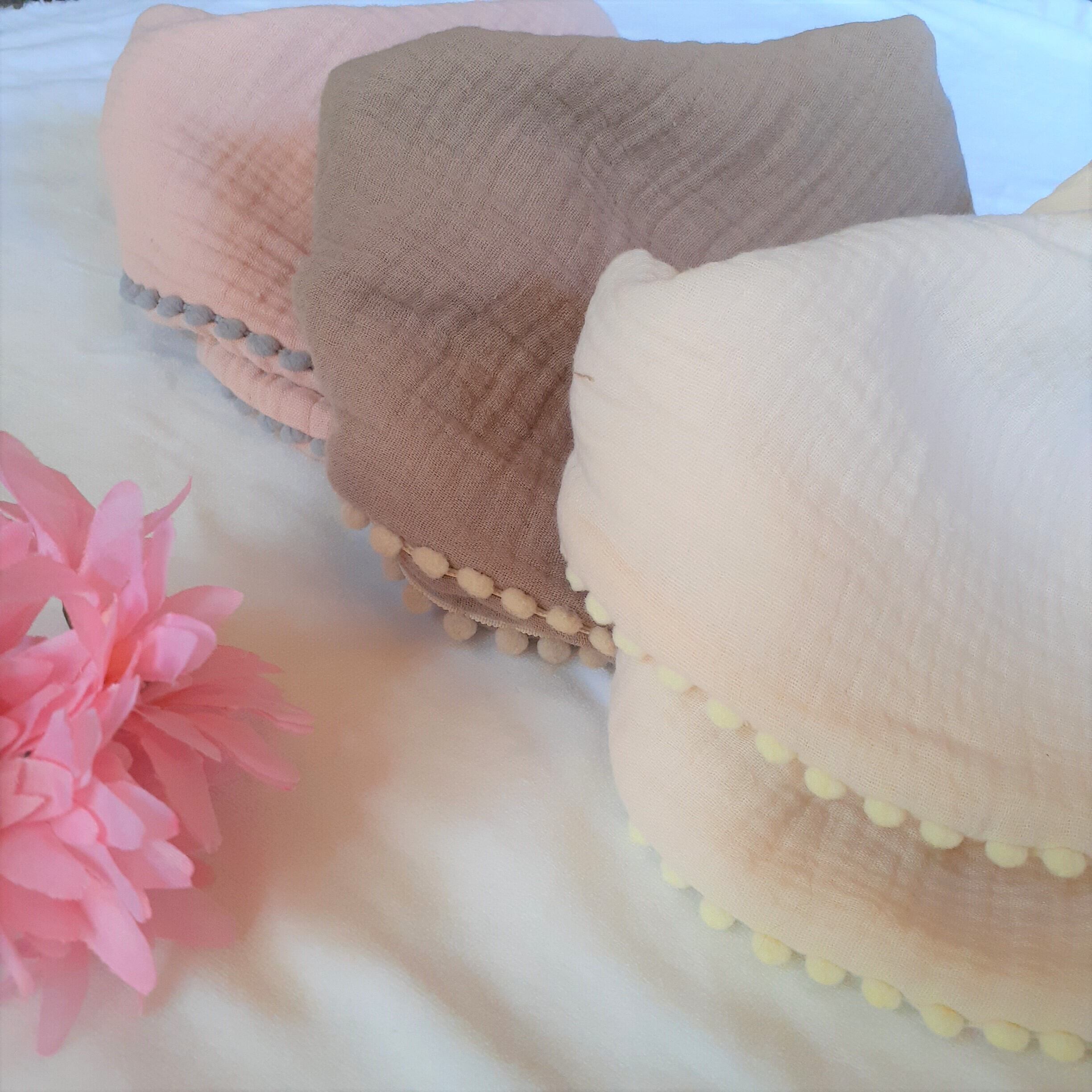 裏表にくすみカラーのぽこぽこダブルガーゼ生地、間に吸水性の良いタオルを使用して、ふわふわでとろんとしたやさしい手触りのよだれかけです。