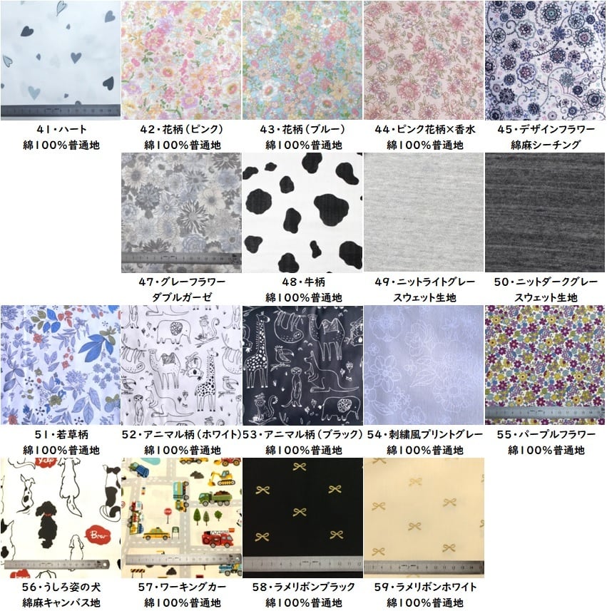 外側、内側の生地をお選びいただき、ご希望の生地の番号を記入してください。